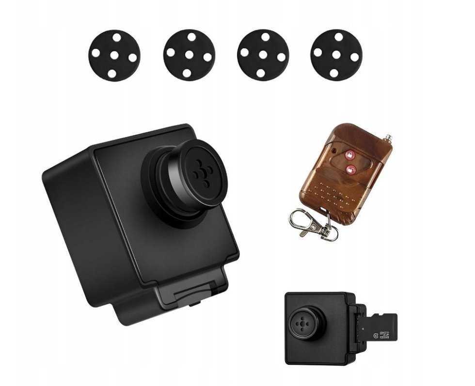 Button camera with audio – spy hidden FULL HD cam + remote control is the perfect spion camera for unobtrusive recording of the environment around you. It supports storing videos and photos on a micro SD card up to 128GB in size. This miniature spy camera with remote control is designed to give you discreet and efficient recording.